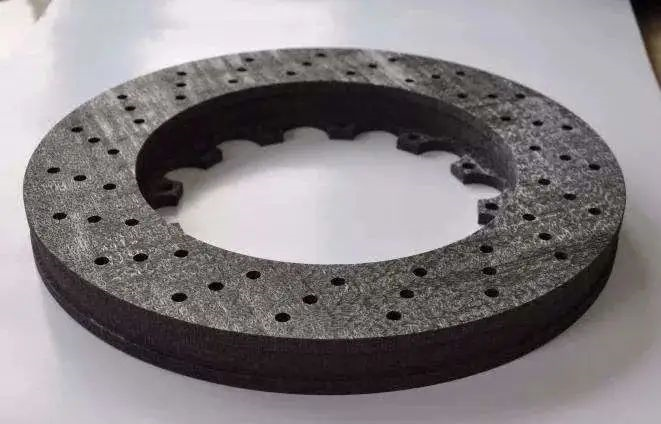 碳/陶(C/SiC)復(fù)合材料是在中、低密度的碳碳復(fù)合材料中通過氣相沉積或液相硅浸漬得到的一類新型復(fù)合材料。碳/陶復(fù)合材料具有高強(qiáng)度、高模量、高硬度、耐沖擊、抗氧化、耐高溫、耐酸堿、熱膨脹系數(shù)小、濕態(tài)摩擦系數(shù)穩(wěn)定、密度小等一系列優(yōu)點(diǎn),是公認(rèn)的理想高溫結(jié)構(gòu)材料和摩擦材料。目前被廣泛應(yīng)用在航空航天、汽車、冶金、半導(dǎo)體等多個(gè)領(lǐng)域。可制作高溫結(jié)構(gòu)件、剎車盤、發(fā)熱元件、電極、熱交換器、坩堝、機(jī)械密封件和熱壓模具等。